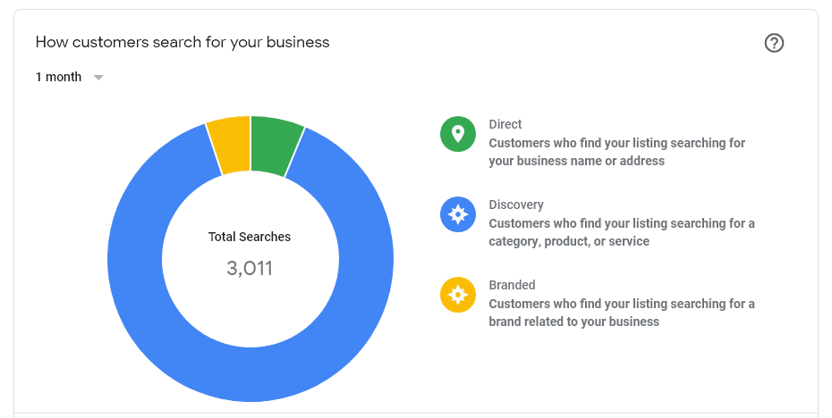GMB tells you how customers are discovering your profile and breaks this down into categories.