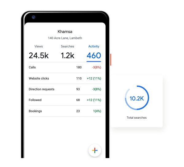 Once a customer discovers your profile, GMB can tell you a lot about what actions customer then took. For example, if you’ve added your website, a phone number, and a link to make bookings, Google can tell you how many website clicks, calls, bookings, etc. were performed.
