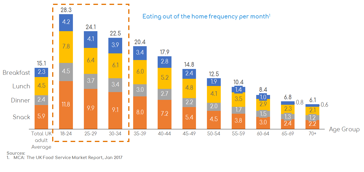 Millennials & Gen Z’s have the highest visit frequency for out of home eating and make the biggest contribution to eating out spend – this is driven by their desire to try new things