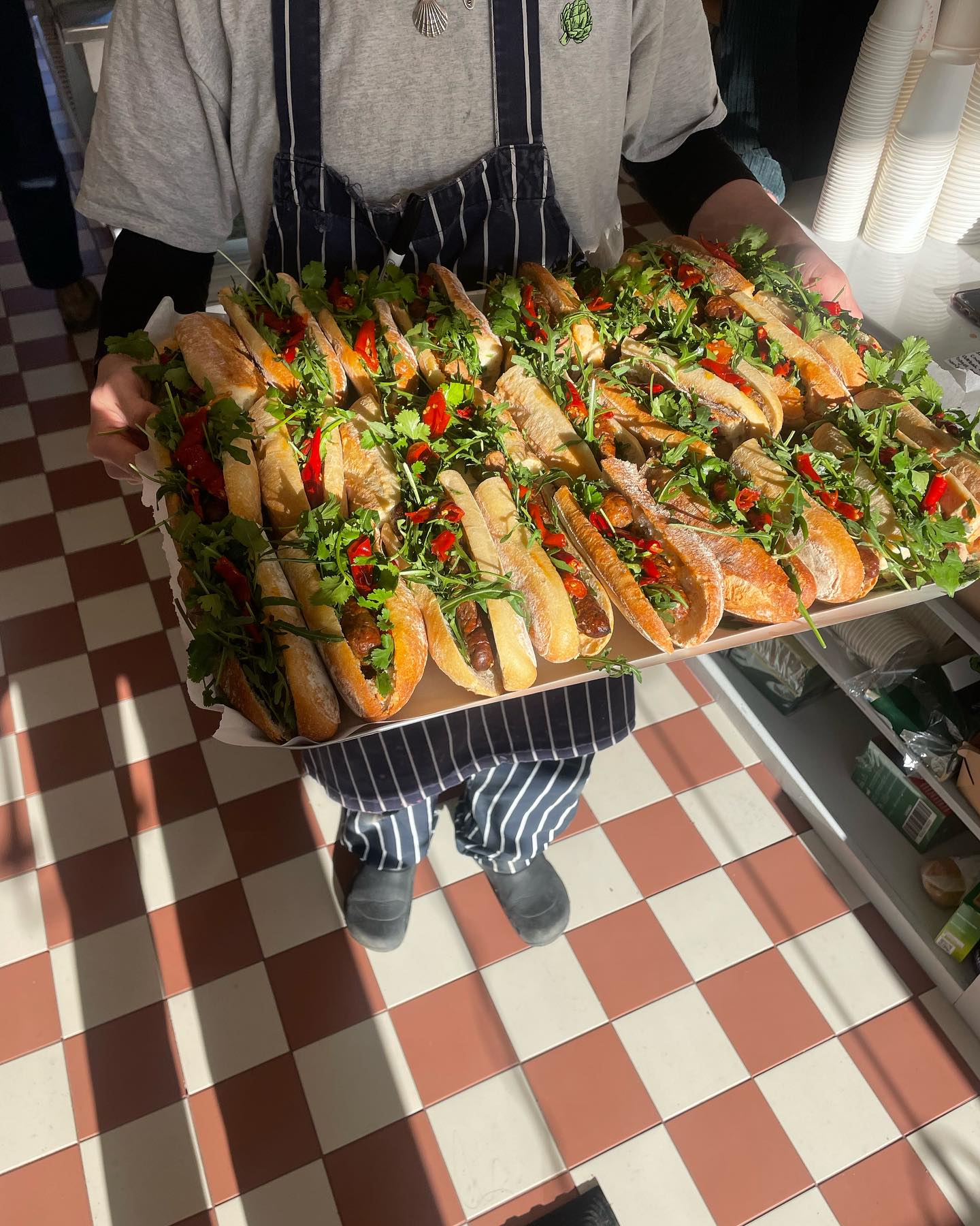 “We're a catering company. That's how we started, and that's the bulk of what we still do. And we've ended up in this funny niche catering to film sets and fashion shoots. So, we feed the crews on set breakfast and lunch.” Recently, they opened their first brick-and-mortar spot in North London, bringing their daily-changing catering menu to Finsbury Park locals. “We needed to move to a new kitchen,” Milly explains. “And we really wanted somewhere where we could also have a counter so the general public could come and get what we're making that day. So that's what we have in our new space. The counter is where people can get coffee, buy that day’s boxed breakfasts and lunches, and whatever baked goods we made that day”. “For everyone coming in off the street,” Suzie adds, “there’s always something different to try.”