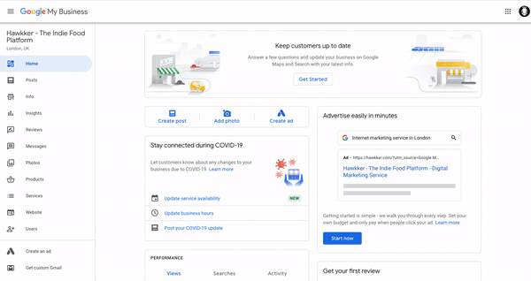 If you run an online-only food business that delivers nation-wide, you might not have a specific service area since customers don’t visit your store. In this instance, you might select “UK” or “England”. It is understandably harder for online-only businesses to rank highly for Local searches, but fear not! Google Local search is not the only way customers can discover your business. Google also compares other relevant characteristics of your business to the intent of the searcher, and services like Hawkker (?) go a long way towards helping online-only food businesses get discovered.