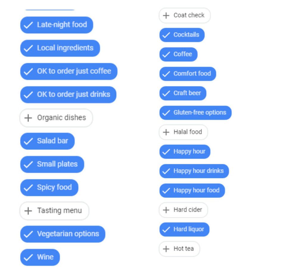 Now, here is where you can really celebrate what makes your food business unique. Google offers two types of Attributes : Objective Attributes and Subjective Attributes.